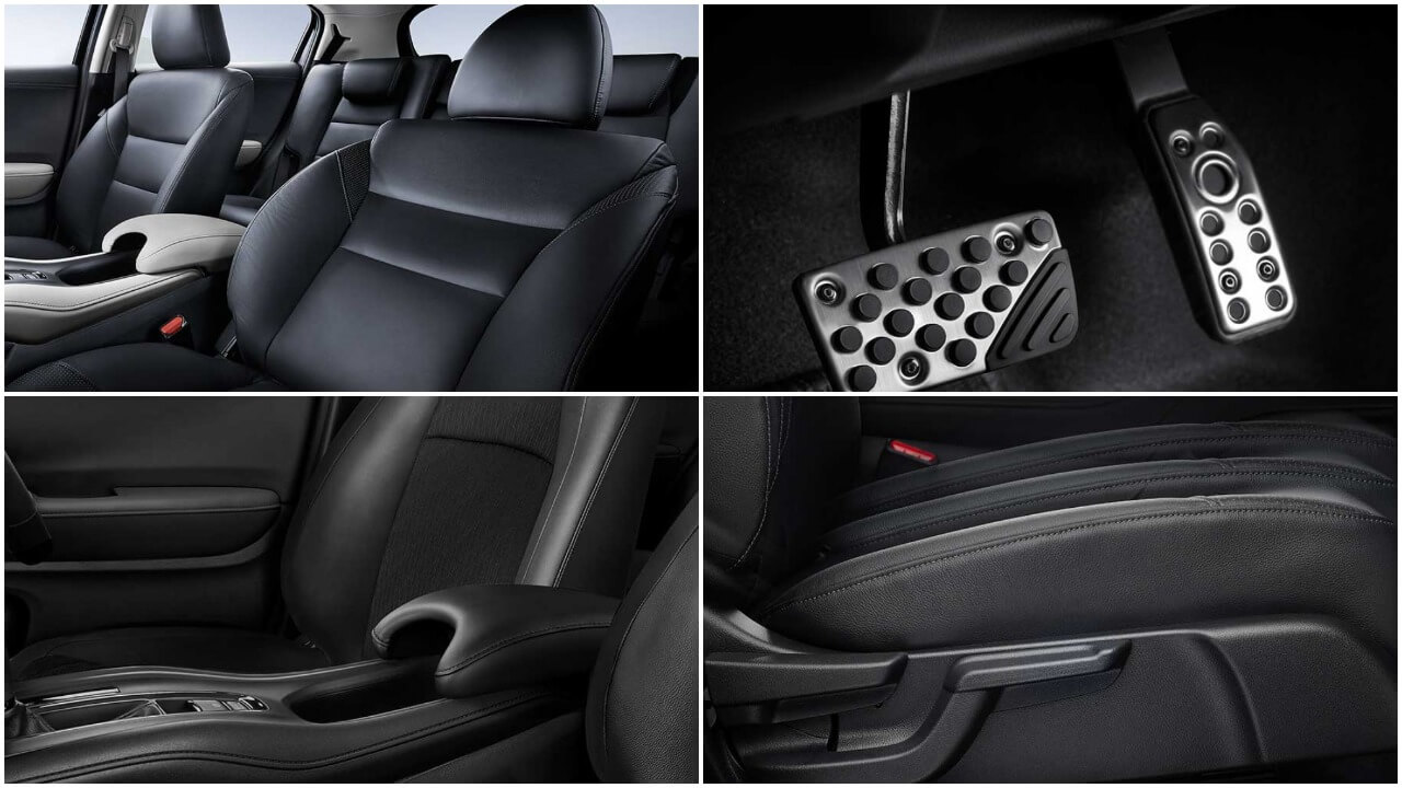 Pada sisi interiornya, Honda HR-V dirancang dengan kabin cukup lega. Dengan harga Honda HR-V baru yang terbilang terjangkau, sejumlah fitur interiornya sangat memadai dan mendukung kenyamanan saat berkendara. Fitur tersebut seperti lampu kabut, kamera parkir, sensor parkir, Rear Armrest, Remote Fuel Filler, Rem ABS EBD, defogger di kaca bagian depan dan wiper, Central locking dengan remote, Power Steering, Power window, Dual airbags, serta AC dilengkapi dual climate control.